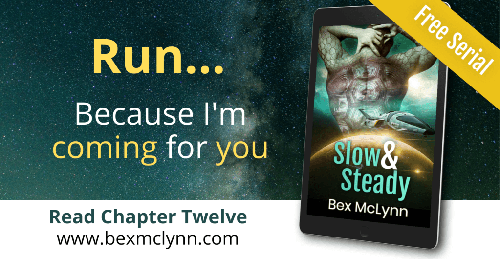 Slow & Steady – Chapter Twelve Available June 26, 2020 ~ bexmclynn Chapter Twelve is live! “Run. Because once I scour this pathetically dismal settlement for some decent rope, I’ll be coming for you.”