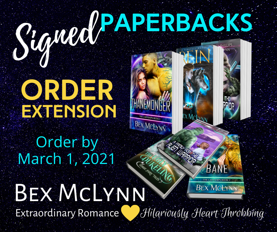 Signed Paperbacks – Order Extension February 14, 2021 ~ bexmclynn My signed paperback order form will be open until the end of the month. ORDER NOW Order deadline is March 1, 2021 Share this: Click to share on X (Opens in new window) X Click to share on Facebook (Opens in new window) Facebook Like Loading... Related Published by bexmclynn View all posts by bexmclynn